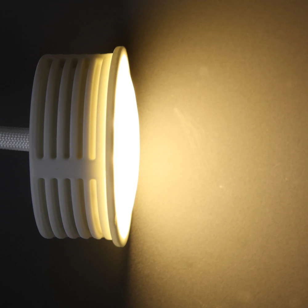 Die Lichtleistung wird durch mehrmaliges Ein- und Ausschalten von 100% auf zunächst 50% und anschließend auf 20% der Helligkeit herabgesetzt. Die Intensität des Lichtes kann auf diese Weise ganz nach persönlichen Wünschen mühelos angepasst werden. Erst nach längerem Ausschalten leuchten die LEDs wieder in ihrer höchsten Helligkeitsstufe.