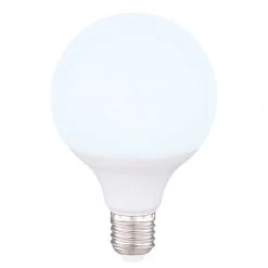 E27 LED Leuchtmittel in Globeform in weiß mit RGB + weißer Lichtfarbe.