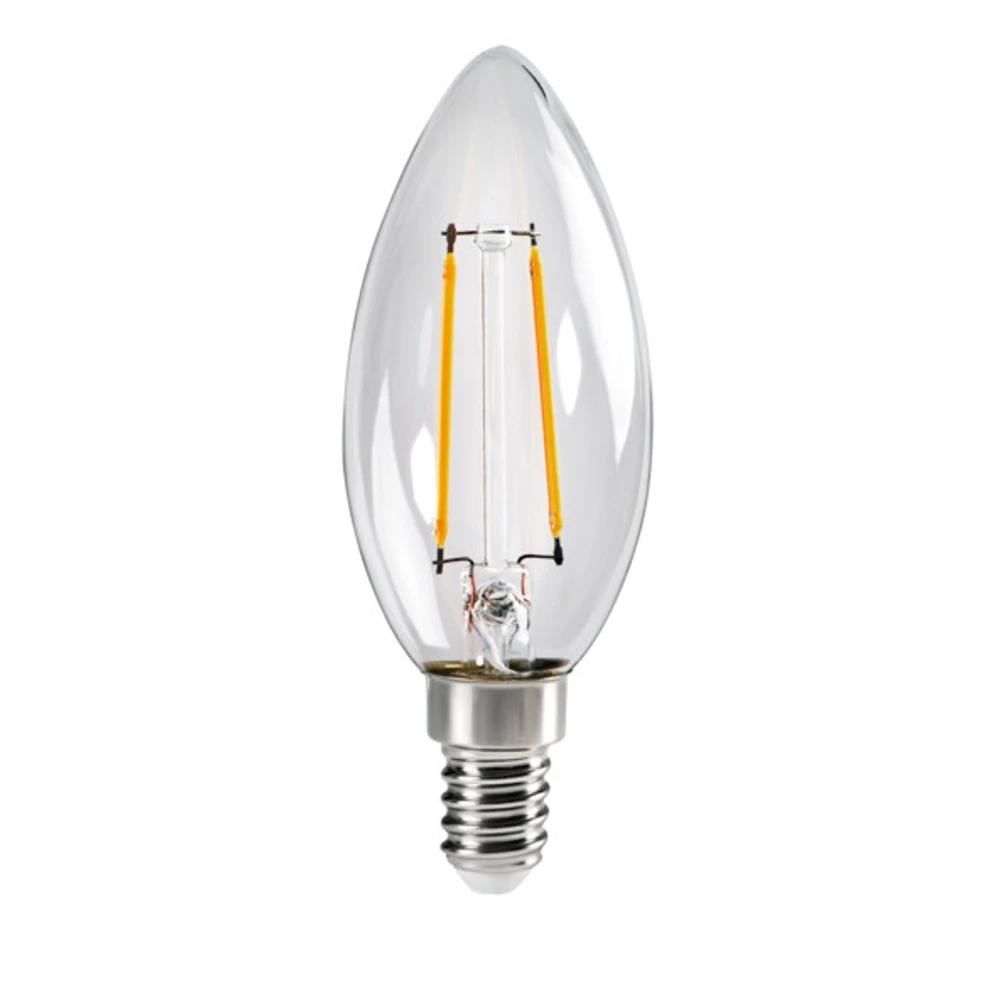 Warmweißes LED-Leuchtmittel in Kerzenform mit klarem Glaskolben, Fassung E14