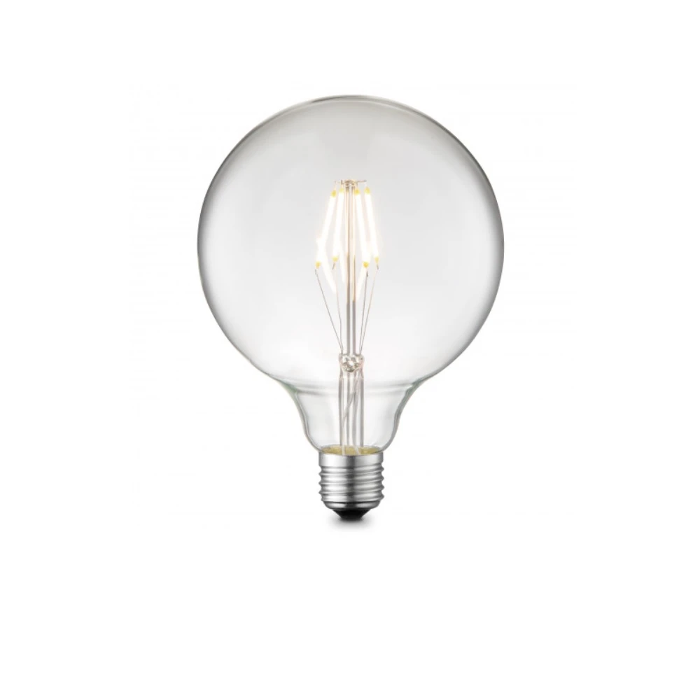 Mit großem runden Kolben aus Klarglas gefertigt, besticht dieses LED Filament Leuchtmittel mit Globe-Form und nostalgischem Charme.