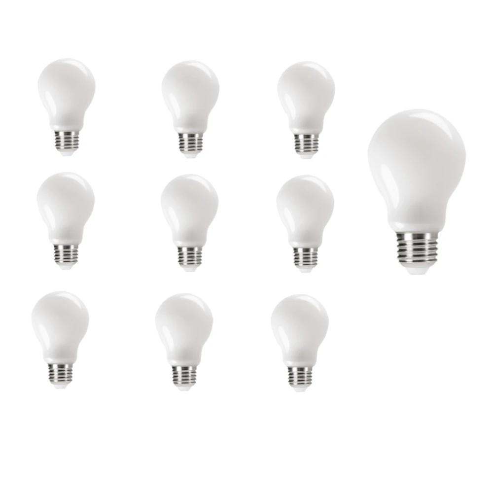 Warmweißes LED-Leuchtmittel in Bauform A60 mit opalem Glaskolben im 10er Set