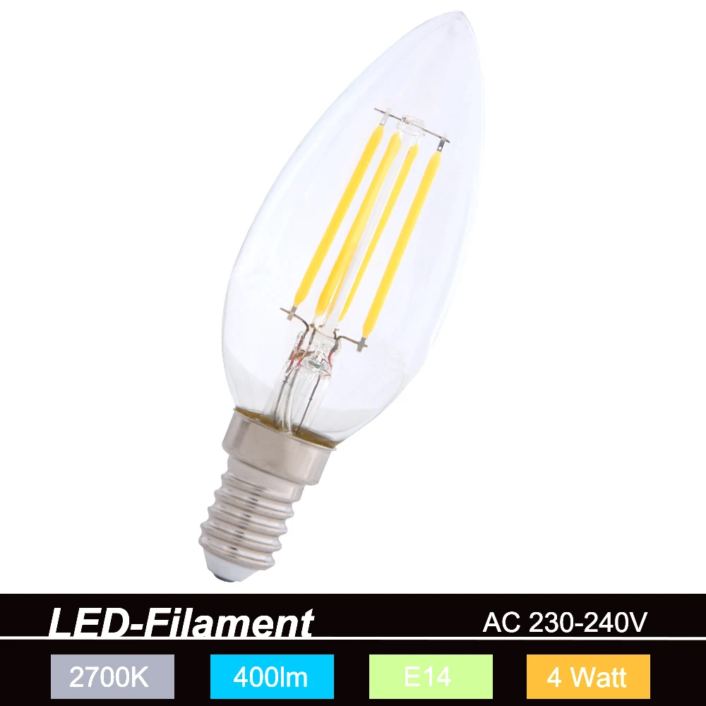 LED Fillament C35 LED Kerze 4W transp. E14 2700K 230V 400 Lumen