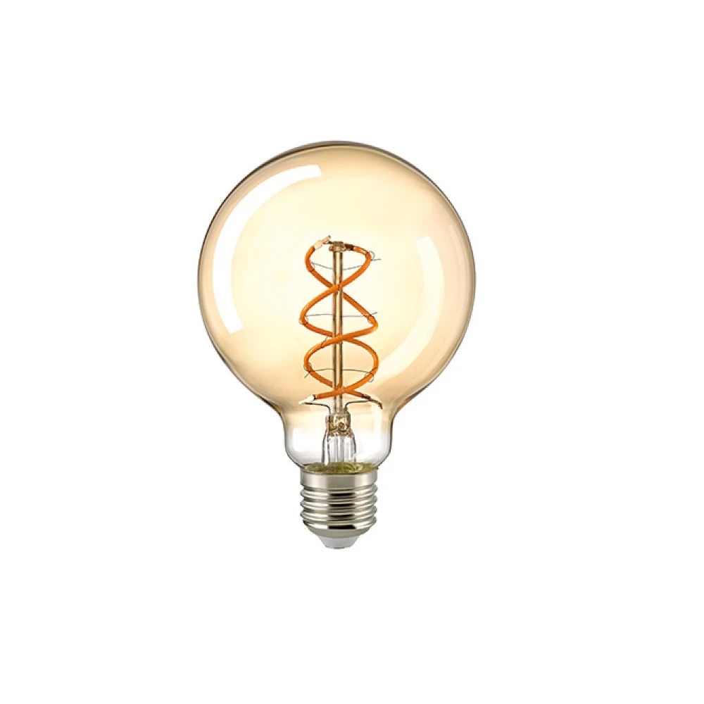 Das große Globe Leuchtmittel begeistert mit gewendelten Filamenten, die für eine einzigartige Optik sorgen. Das G95 Leuchtmittel ist ideal um in schlichten Leuchten, die einen direkten Blick auf das Leuchtmittel ermöglichen, eingesetzt zu werden. Den Leuchten verleiht es durch die dekorative Optik einen ganz besonderen, individuellen Charme.