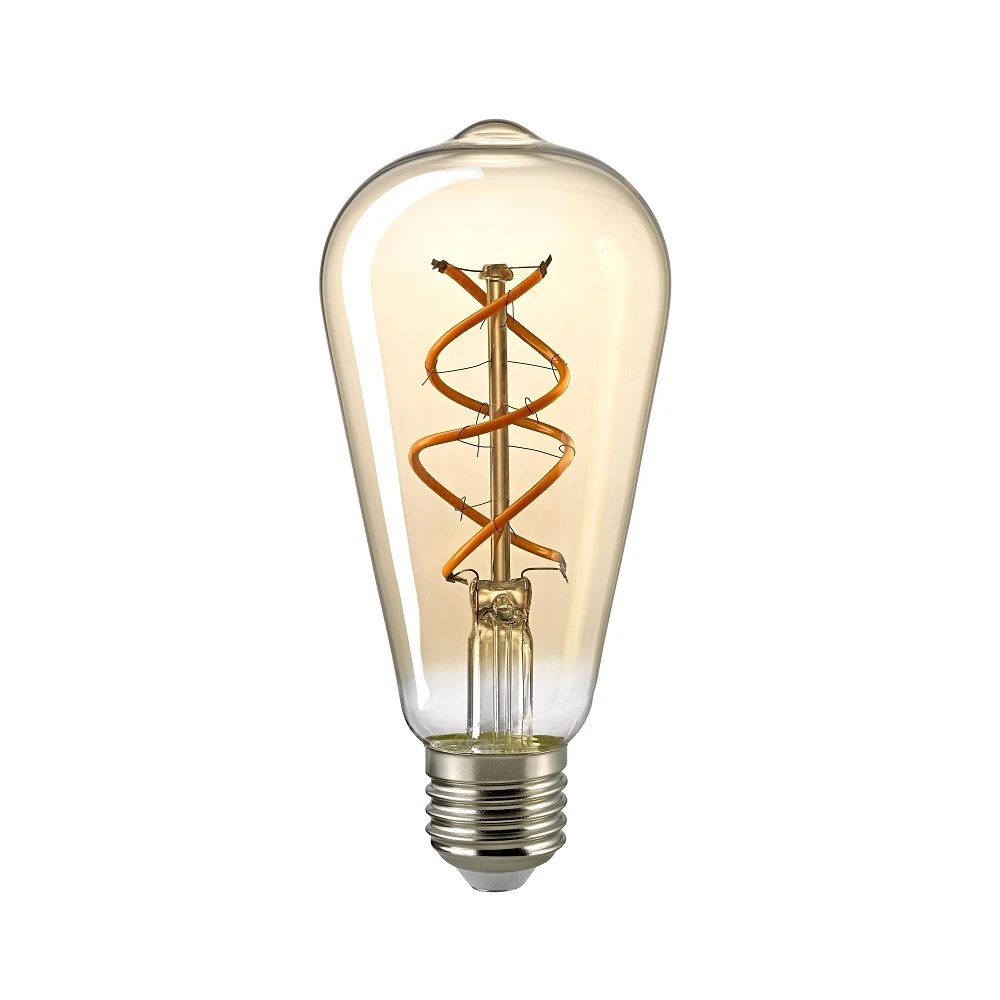 Die Rustikalampe begeistert mit gewendelten Filamenten, die für eine einzigartige Optik sorgen. Das E27-Leuchtmittel ist besonders gut geeignet um in schlichten Leuchten, die einen direkten Blick auf das Leuchtmittel ermöglichen, eingesetzt zu werden. Diesen verleiht es durch die einzigartige Optik einen ganz besonderen Charme.