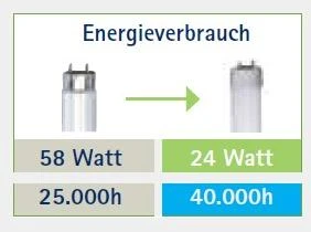 - Länge wie bei Leuchtstofflampen 58 Watt